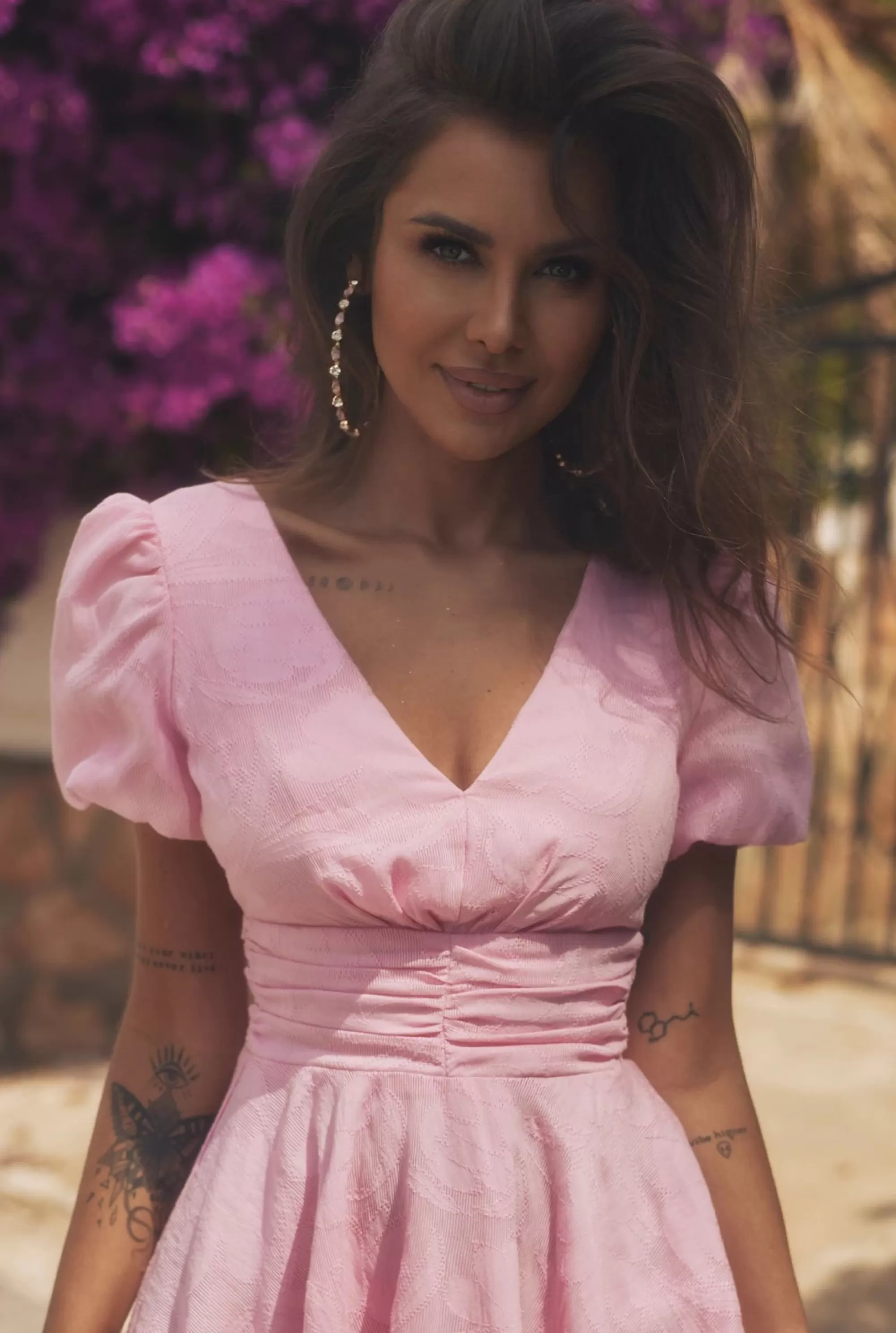 Summer Full Of CharmThis Unique Summer Mini Cocktail Dress In Powder Pink Is A Perfect Choice For Various Occasions, Such As Valentine’S Day, Romantic Dates, Communion Or Baptism. Its Flared Bottom, Short Sleeves And Decorative Ruffles At The Waist Give It Subtlety And Elegance, Emphasizing The Feminine Silhouette.Made Of Breathable, Translucent Material, Nilda Not Only Provides Comfort On Warm Summer Days, But Also Emphasizes Your Natural Beauty. Its Unique Pattern, Embossed On The Fabric, Gives It A Unique Character And Attracts Attention.Fastened With A Discreet Zipper, The Dress Is Easy To Put On And Take Off. Its Delicacy And Lightness Will Make You Feel Exceptional And Beautiful At Every Step. Adding Subtle Charm And Elegance To Your Summer Stylizations, It Will Become An Irreplaceable Element Of Your Wardrobe.By Choosing A Nilda Dress, You Can Be Sure That You Will Stand Out From The Crowd And Get Many Compliments. Its Universal Design And Perfect Fit Make It Perfect For Both Romantic Souls And People Who Value Fashion Freshness. Regardless Of The Occasion, It Will Be Your Secret Ass, Adding Charm And Elegance To Your Summer Style.Do Not Wait Any Longer – Choose This Mini Cocktail Dress In Powder Pink And Enjoy The Unique Style That Will Attract Attention And Emphasize Your Feminine Elegance! ColourShades Of PinkLengthMiniLiningYesPregnancyNoFabric 1Viscose 77%, Polyamid 19%, Polyester 4%Fabric 2Cotton 100%
