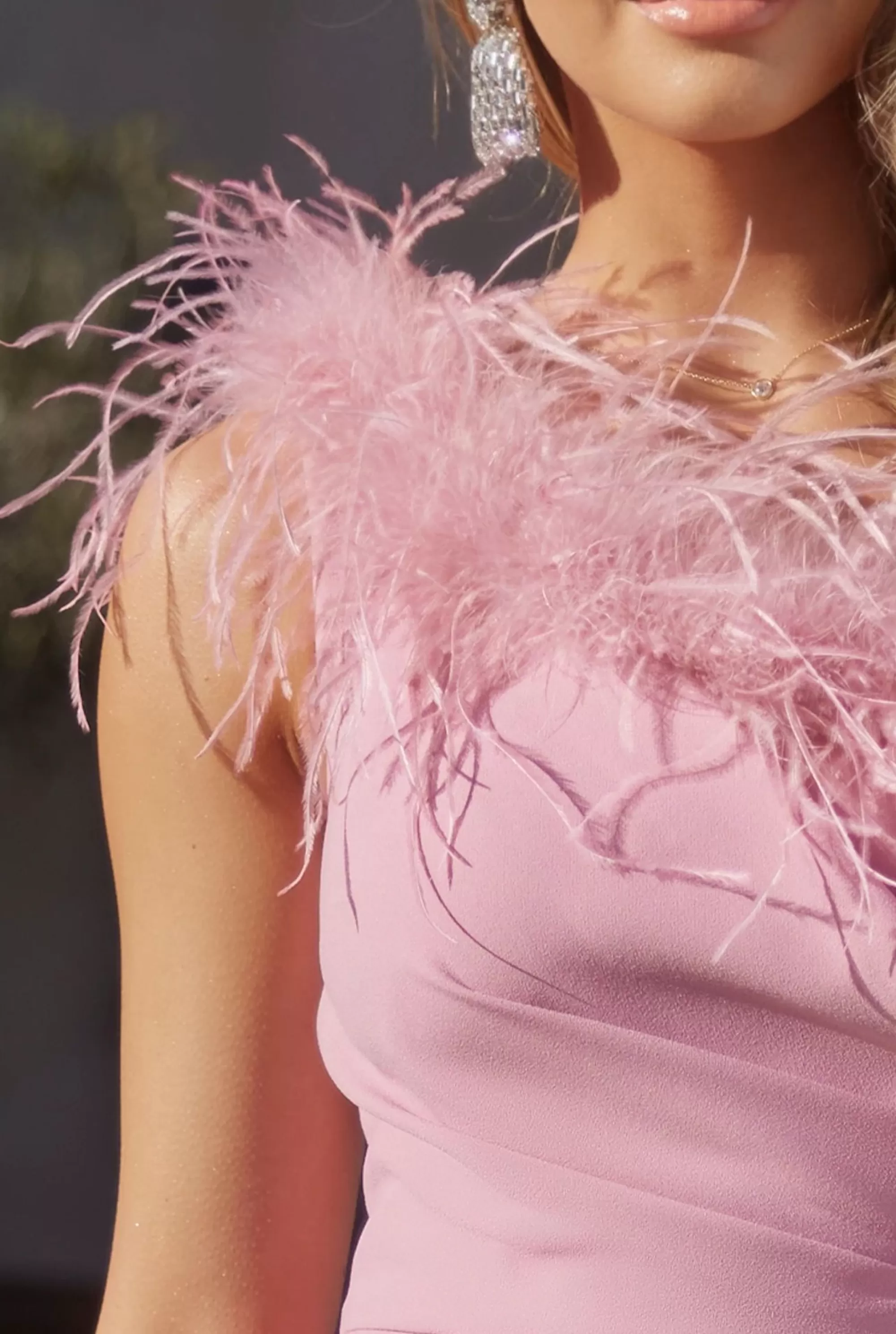 The Amaya Dress Combines Elegance And Modernity, Making It An Ideal Choice For Women Who Value Unique Style. This One-Shoulder Maxi Dress Is Characterized Not Only By A Classic Cut, But Also By Original Details That Attract Attention. A Corset Equipped With Underwires Perfectly Shapes The Figure, Emphasizing The Advantages Of The Figure.An Additional Element That Distinguishes This Model Is The Neckline Decorated With Boa Feathers Giving The Outfit A Luxurious Character. There Are Pleats On The Front Of The Dress That Add Lightness And Subtle Modeling To The Whole.